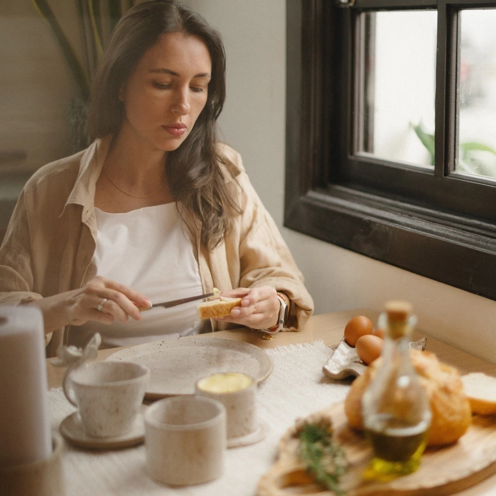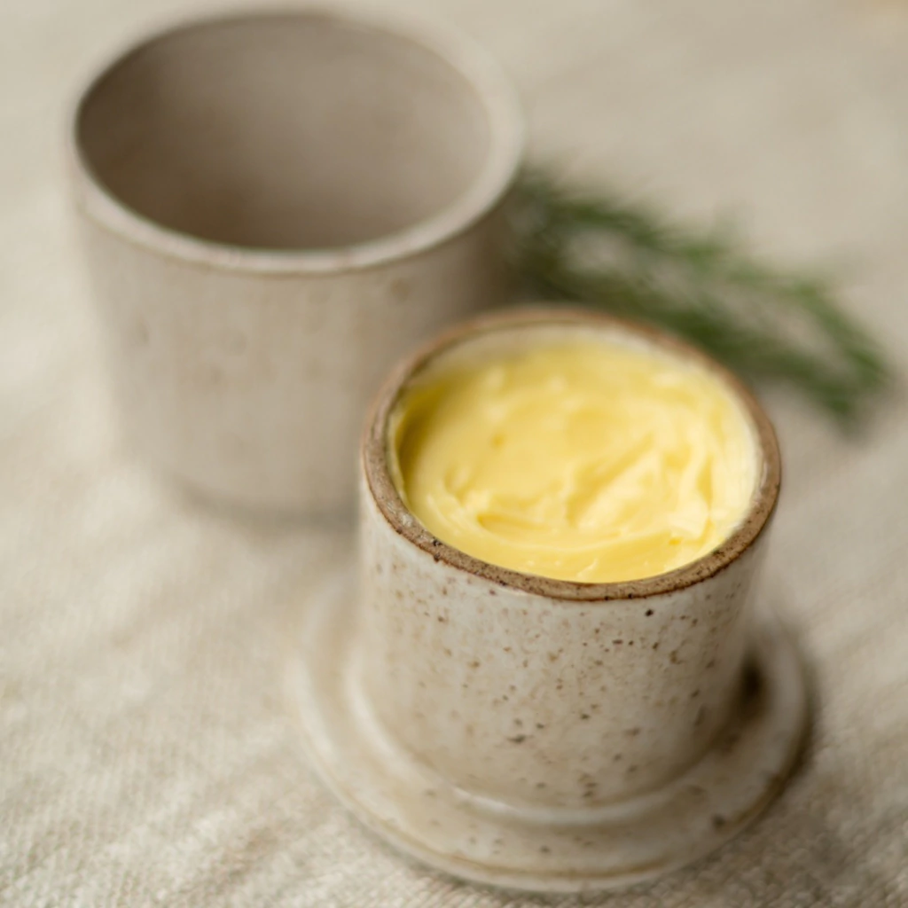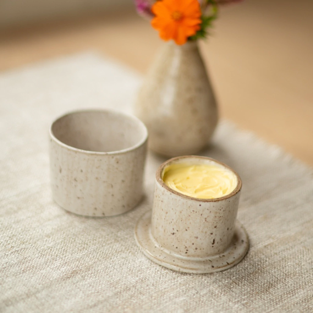 Manteigueira de cerâmica linha Ovo ideal para servir manteiga em temperatura ambiente.