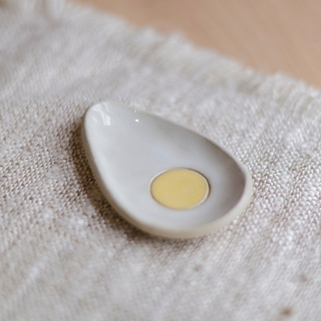 Mini prato de cerâmica linha Ovo ideal para apoio de joias e pílulas.