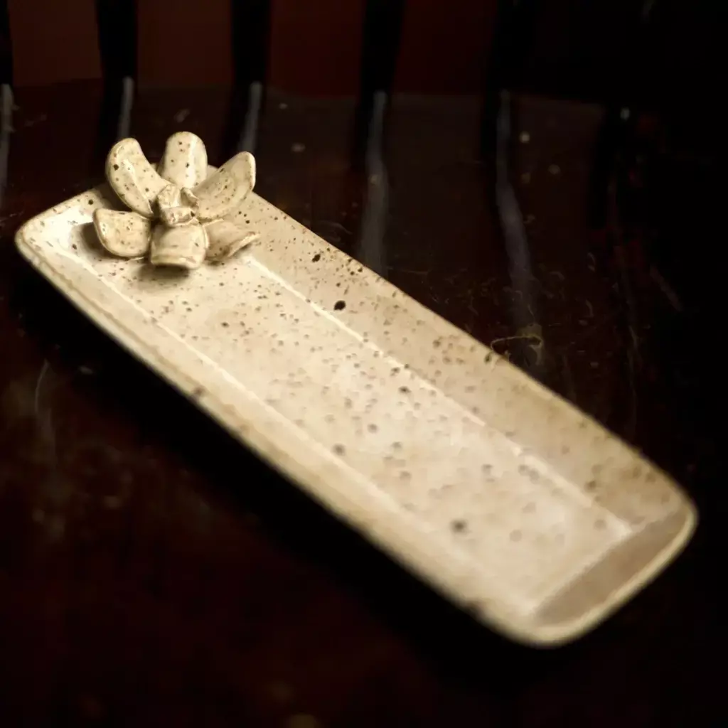 Prato Retangular Orquídea G, em cerâmica. Ideal para servir petiscos ou decorar ambientes com delicadeza.